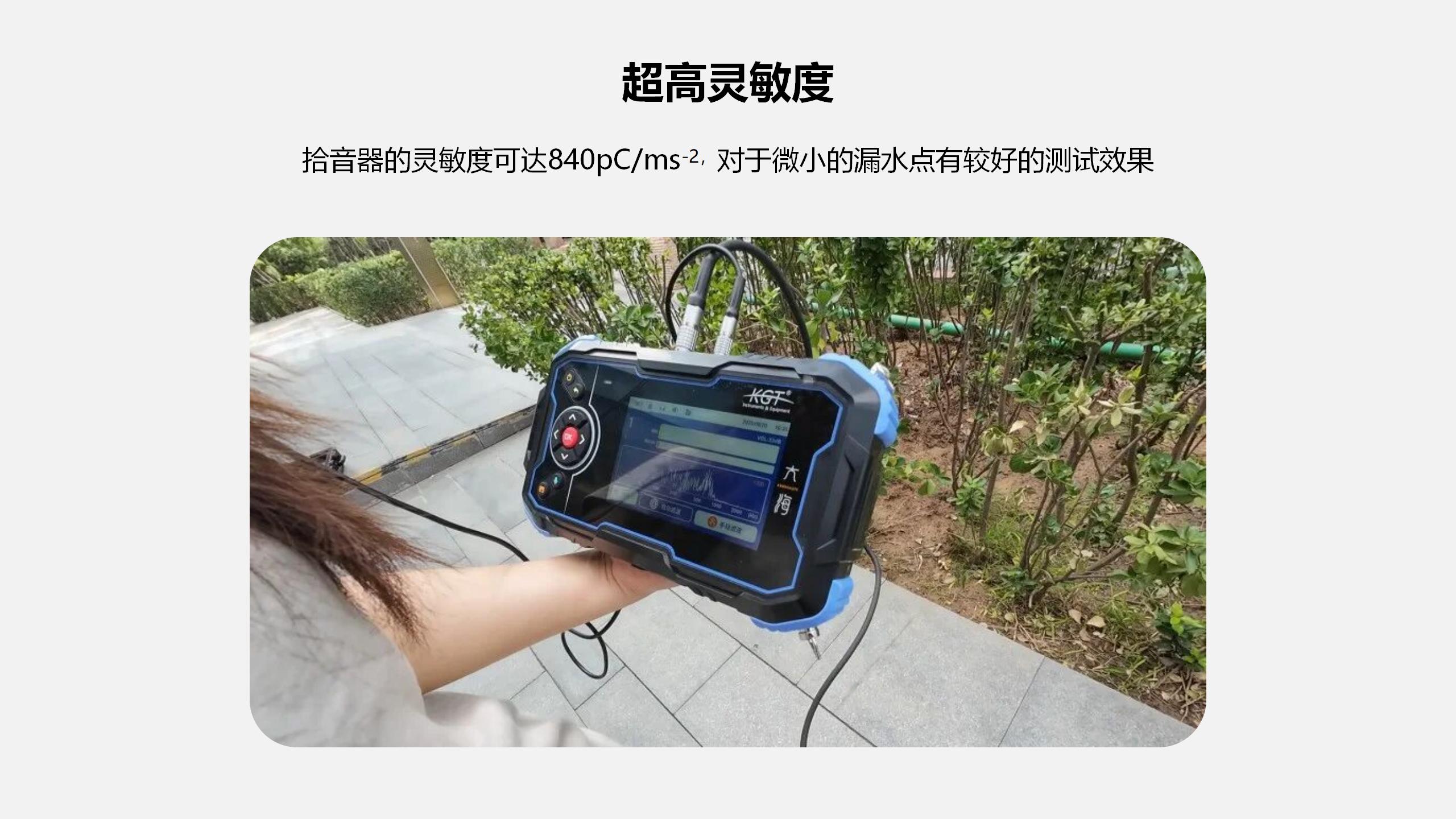 康高特大海智能數(shù)字聽漏儀在環(huán)保行業(yè)的污水管網(wǎng)滲漏檢測(cè)、污染防控排查中可發(fā)揮重要作用,針對(duì)污水管網(wǎng)的特殊環(huán)境做了多項(xiàng)專屬設(shè)計(jì)。首先是材質(zhì)防腐設(shè)計(jì),污水管網(wǎng)內(nèi)存在酸性、堿性腐蝕介質(zhì),設(shè)備的拾音器采用聚四氟乙烯鍍層+316L不銹鋼外殼,可耐受pH值4-10的腐蝕環(huán)境,不會(huì)因長(zhǎng)期接觸污水、腐蝕性土壤出現(xiàn)性能下降問題,符合環(huán)保行業(yè)污染防控檢測(cè)設(shè)備的耐用性要求;其次是精度適配設(shè)計(jì),污水管網(wǎng)多為大口徑水泥管、HDPE管,聲波衰減速率快,該設(shè)備優(yōu)化了低頻聲波采集性能,可有效捕捉頻率≤50Hz的滲漏聲波,針對(duì)DN150-DN1800的污水管網(wǎng),最小可識(shí)別漏量≥1L/min,定位誤差≤1m,可精準(zhǔn)識(shí)別污水管網(wǎng)的隱蔽滲漏,避免污水滲漏污染土壤、地下水,支撐生態(tài)環(huán)境部門的污染排查工作,也可幫助污水處理企業(yè)降低管網(wǎng)漏損率,減少進(jìn)水水量損失;第三是場(chǎng)景適配設(shè)計(jì),設(shè)備支持井下檢測(cè)、地面檢測(cè)兩種模式,可適配不同埋深、不同布局的污水管網(wǎng)檢測(cè)需求,無需管網(wǎng)斷水、開挖即可完成全段排查,可廣泛應(yīng)用于城鎮(zhèn)污水管網(wǎng)排查、工業(yè)園區(qū)污水管網(wǎng)檢測(cè)、污水處理廠進(jìn)出水管道巡檢等場(chǎng)景,滿足環(huán)保監(jiān)管部門、污水處理企業(yè)的使用需求。