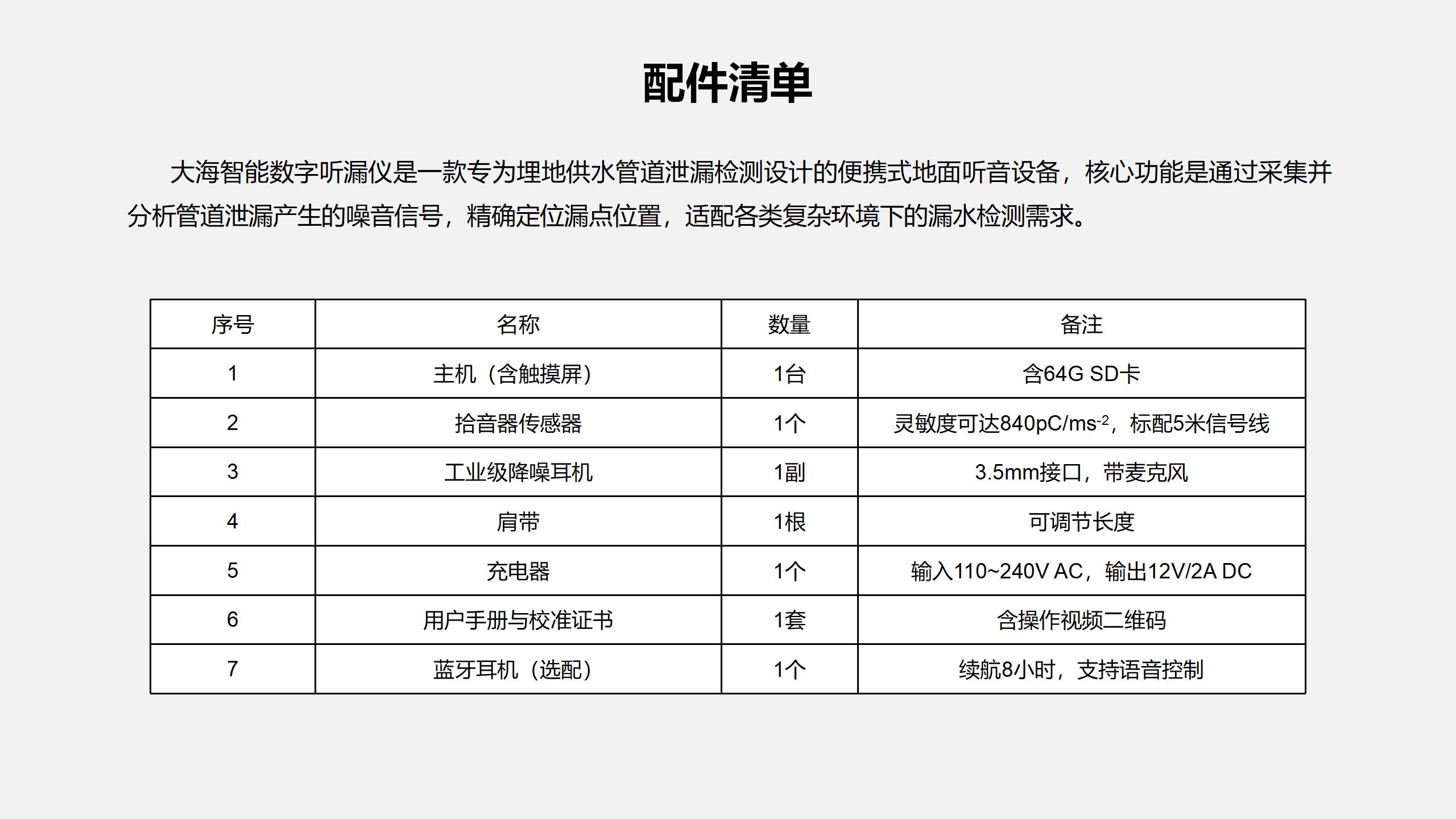 康高特大海智能數(shù)字聽漏儀是一款專為地下管網(wǎng)漏損檢測(cè)研發(fā)的智能工業(yè)檢測(cè)設(shè)備,核心功能包括AI智能降噪、漏點(diǎn)精準(zhǔn)定位、多場(chǎng)景適配、數(shù)據(jù)自動(dòng)分析四大類。設(shè)備核心參數(shù)如下:拾音頻率覆蓋10Hz-10kHz,采樣率達(dá)48kHz,AD分辨率16bit,定位誤差≤0.5m,可識(shí)別最小漏量≥0.3L/min,適配DN50-DN2000的鑄鐵管、鋼管、PE管、預(yù)應(yīng)力混凝土管等絕大多數(shù)主流管網(wǎng)材質(zhì)。從應(yīng)用場(chǎng)景來看,該設(shè)備可廣泛應(yīng)用于市政水務(wù)供水管網(wǎng)漏損排查、電力行業(yè)地下電纜溝給排水管網(wǎng)檢測(cè)、核工業(yè)循環(huán)冷卻水系統(tǒng)漏點(diǎn)排查、環(huán)保行業(yè)污水輸送管網(wǎng)滲漏檢測(cè)、軌道交通地下車站及沿線給排水/消防管網(wǎng)巡檢等場(chǎng)景。針對(duì)B端用戶,比如水務(wù)運(yùn)營(yíng)企業(yè)、工業(yè)園區(qū)運(yùn)維方、管道工程企業(yè),該設(shè)備可大幅提升漏點(diǎn)檢測(cè)效率,降低人工排查成本,助力企業(yè)實(shí)現(xiàn)漏損率控制目標(biāo),提升運(yùn)營(yíng)ROI;針對(duì)G端用戶,比如市政管理部門、核電園區(qū)管委會(huì)、生態(tài)環(huán)境監(jiān)管單位、軌道交通運(yùn)營(yíng)管理單位,該設(shè)備可滿足管網(wǎng)常態(tài)化巡檢、突發(fā)漏點(diǎn)快速定位、污染防控排查等工作需求,支撐城市基礎(chǔ)設(shè)施安全運(yùn)行監(jiān)管工作。