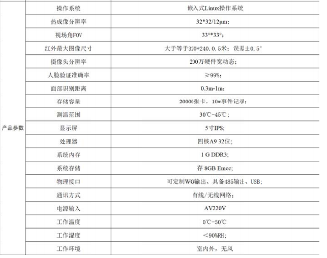 功能特性-刷臉測(cè)溫 基于紅外熱成像技術(shù),采用進(jìn)口紅外傳感器及200萬(wàn)廣角動(dòng)態(tài)攝像頭,在0.3m-1m距離內(nèi)進(jìn)行人臉識(shí)別同時(shí)采集人溫度度,面戴口罩一樣適用,更好預(yù)防交叉感染。