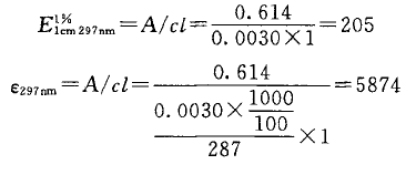 已知某化合物的分子量為287,用乙醇配成濃度為0.0030%的溶液,在波長297nm處,用1 cm石英池,測得吸光度為0.6139,求E值及摩爾吸收系數(shù)ε值。
