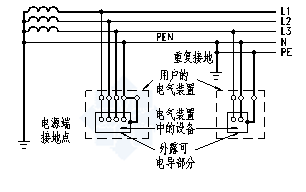 電源端有一點直接接地,電氣裝置的外露可電導部分通過中性導體或保護導體連接到此接地點。